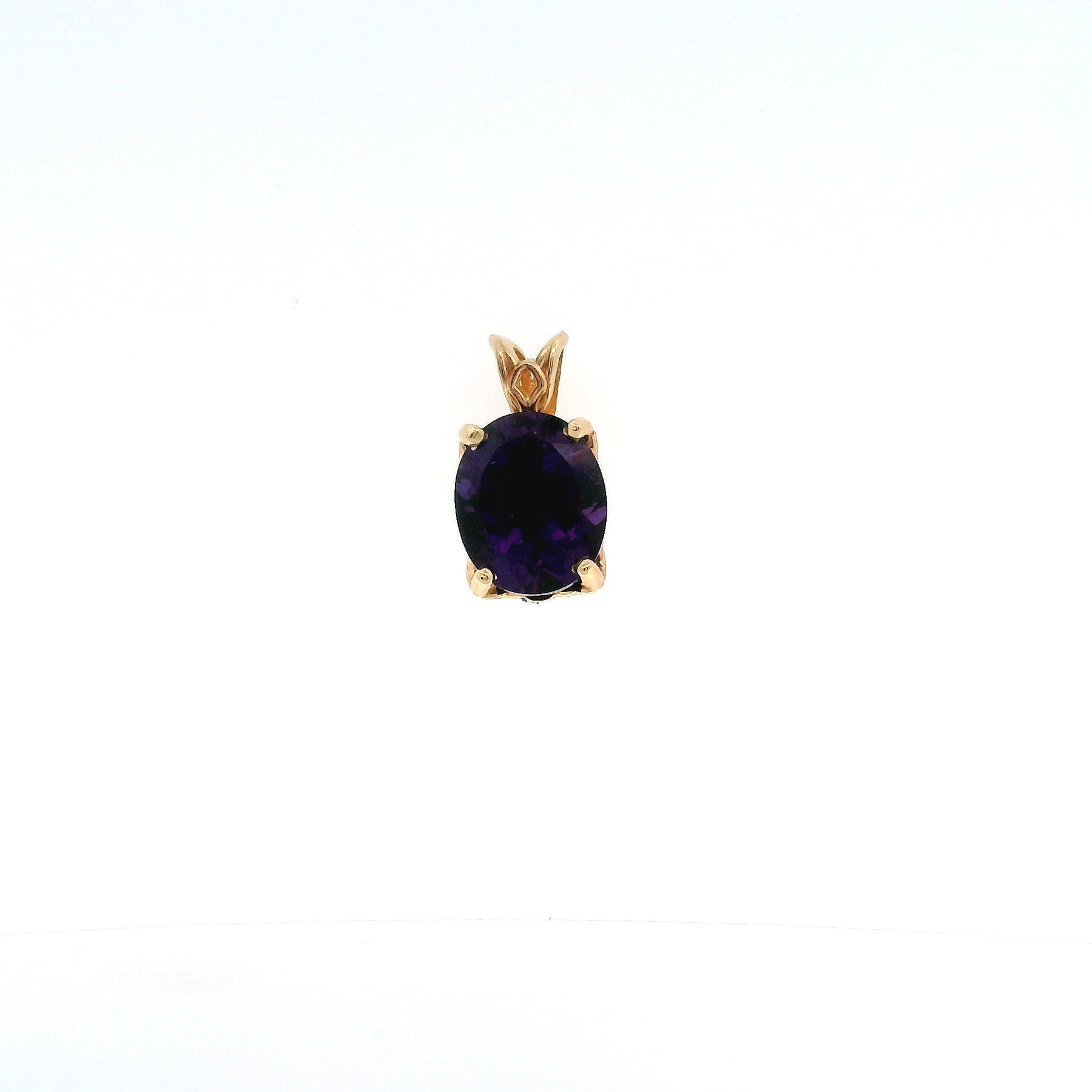 Discover the timeless beauty of this elegant contemporary 14-karat gold amethyst pendant featuring a vibrant purple gemstone. The centerpiece showcases a lovely 1.14-carat oval-cut natural amethyst measuring 9mm x 11mm, displaying the rich, saturated purple hue that makes amethyst one of the most beloved gemstones. Set in a classic solitaire style, this petite pendant measuring 5/8 inch by 3/8 inch offers refined elegance without overwhelming your neckline, weighing a delicate 1.7 grams for comfortable all-day wear.