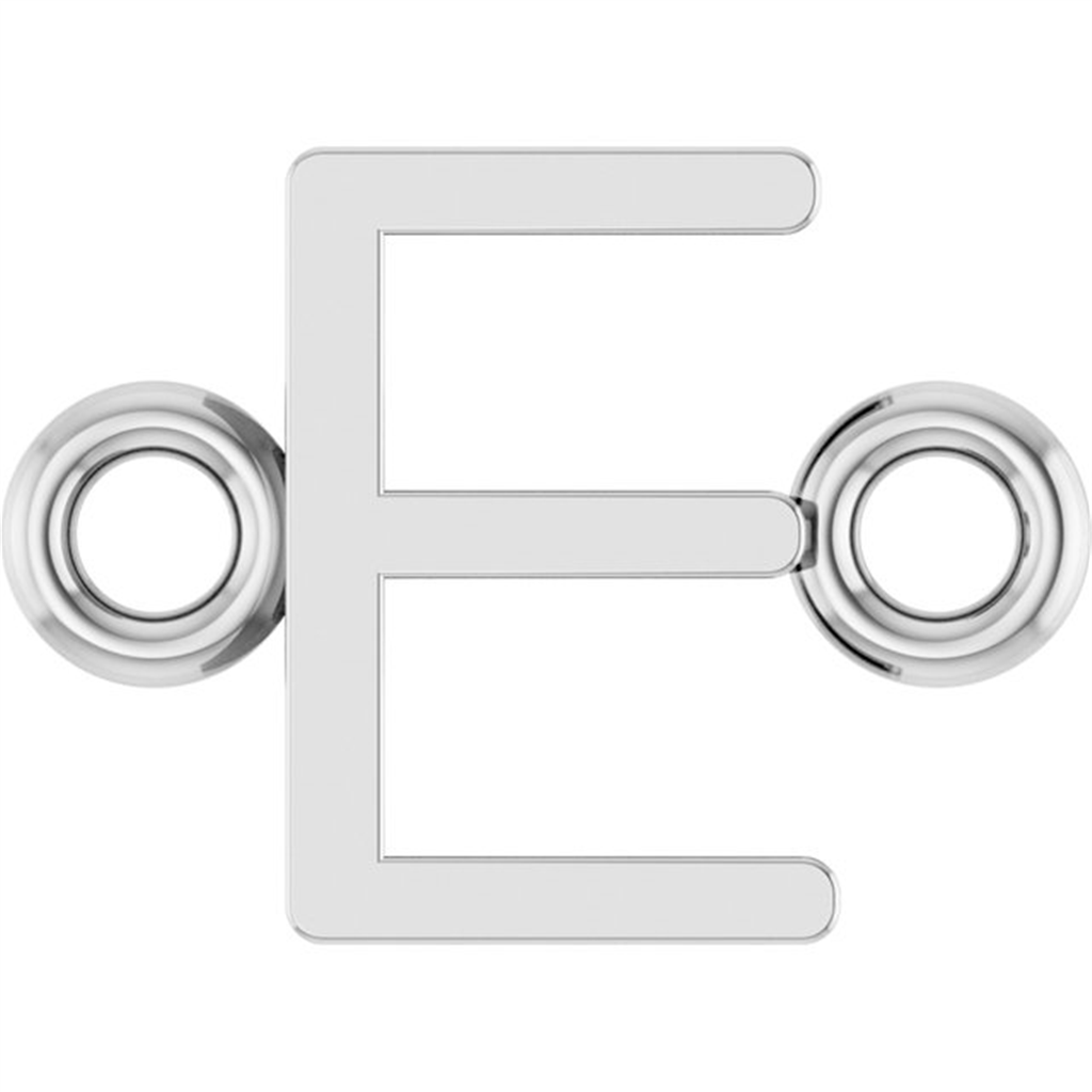 This elegant sterling silver initial E link charm features a modern sans serif design with clean geometric lines and circular connector rings on each side, perfect for permanent jewelry applications and custom bracelet designs. The sophisticated construction showcases contemporary craftsmanship with the minimalist block letter E created in smooth polished sterling silver, while the integrated circular links on both ends allow for seamless integration into chain bracelets and permanent jewelry creations. The Stuller quality ensures precision manufacturing and durable construction, while the bright sterling silver finish creates luxurious appeal with versatile modern style that complements any permanent jewelry design.