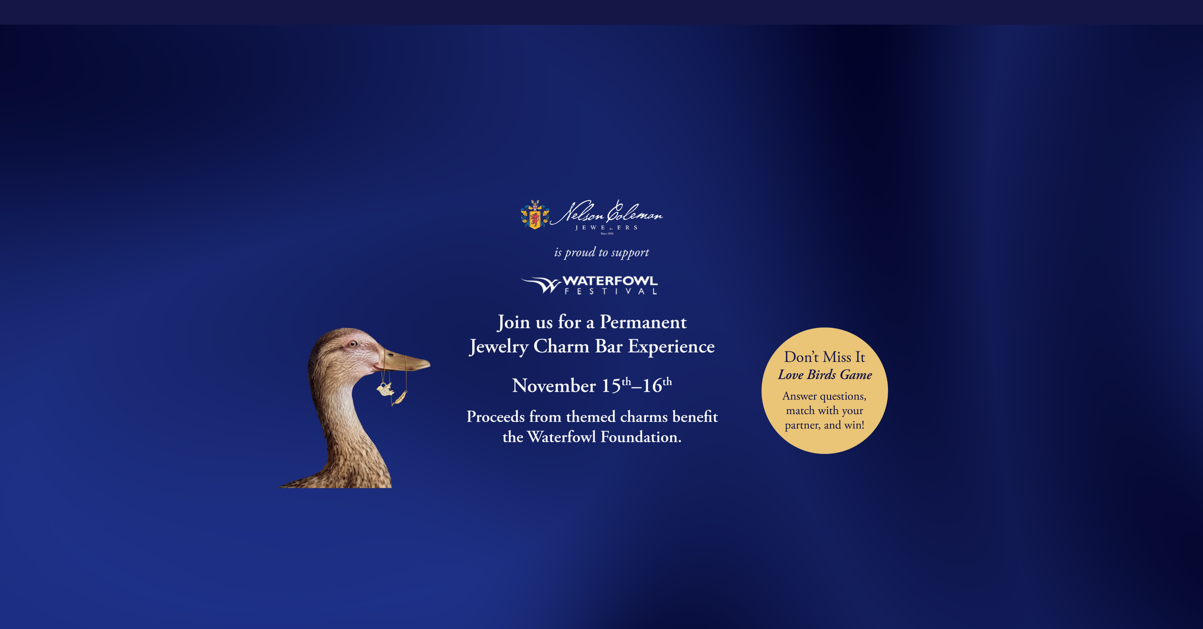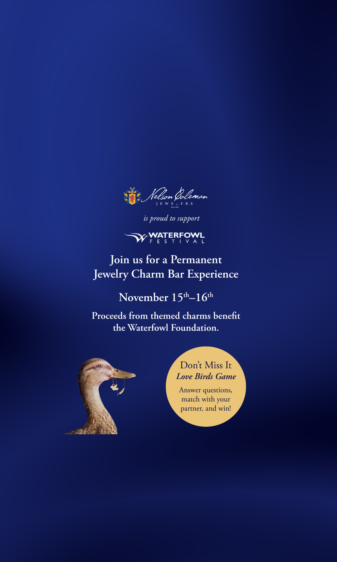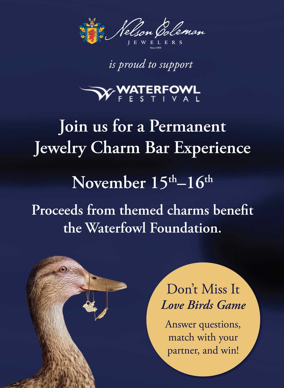 Join us during the Waterfowl Festival for a deluxe permanent jewelry charm bar experience! All proceeds from themed charms will benefit the Waterfowl Foundation.