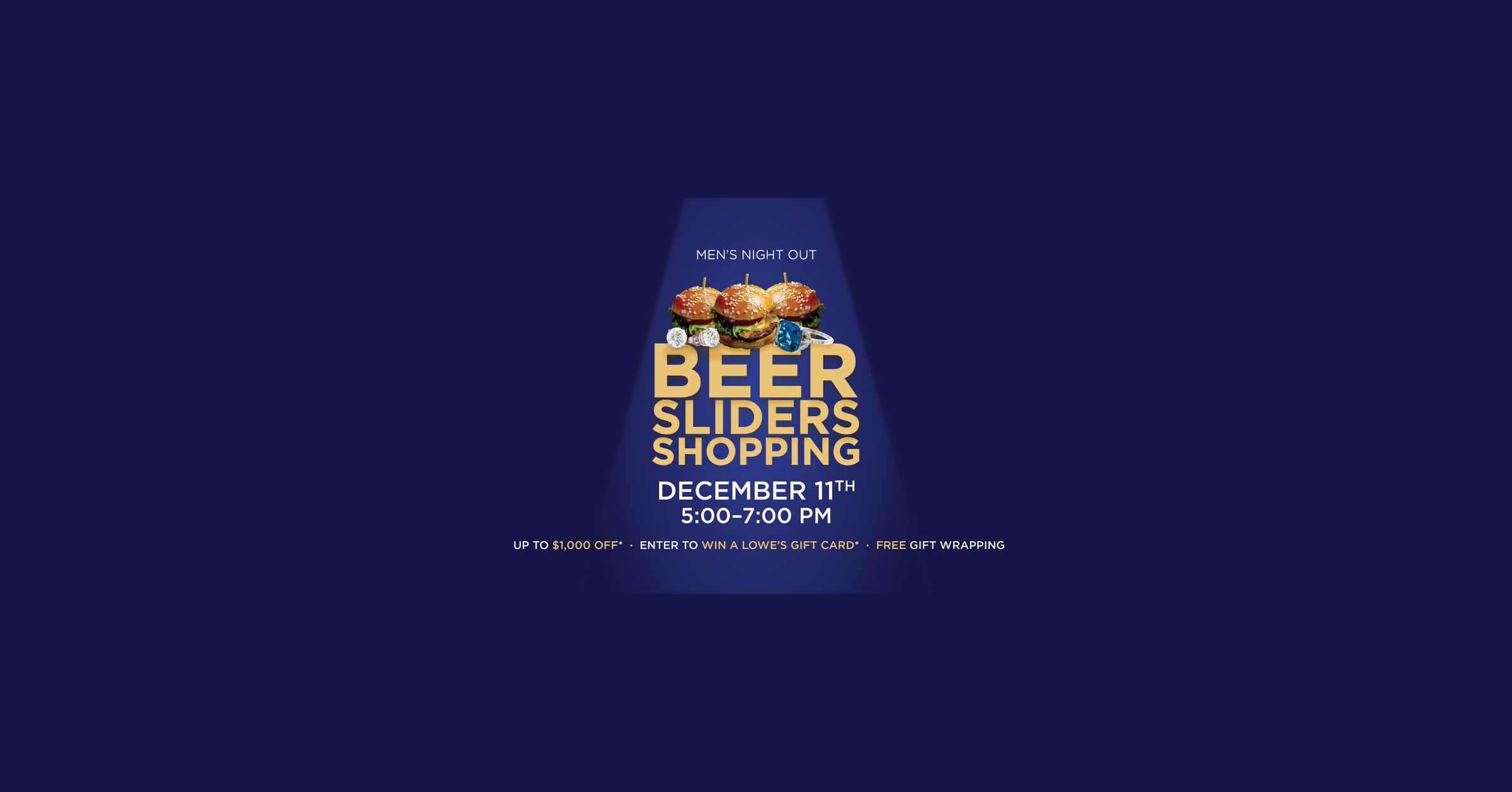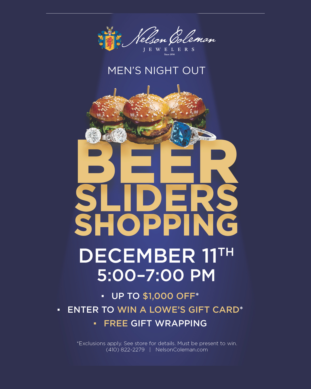 Join us for a night beer and sliders while shopping for the perfect jewelry gift this holiday season! Take advantage of exceptional offers up to $1000 off.