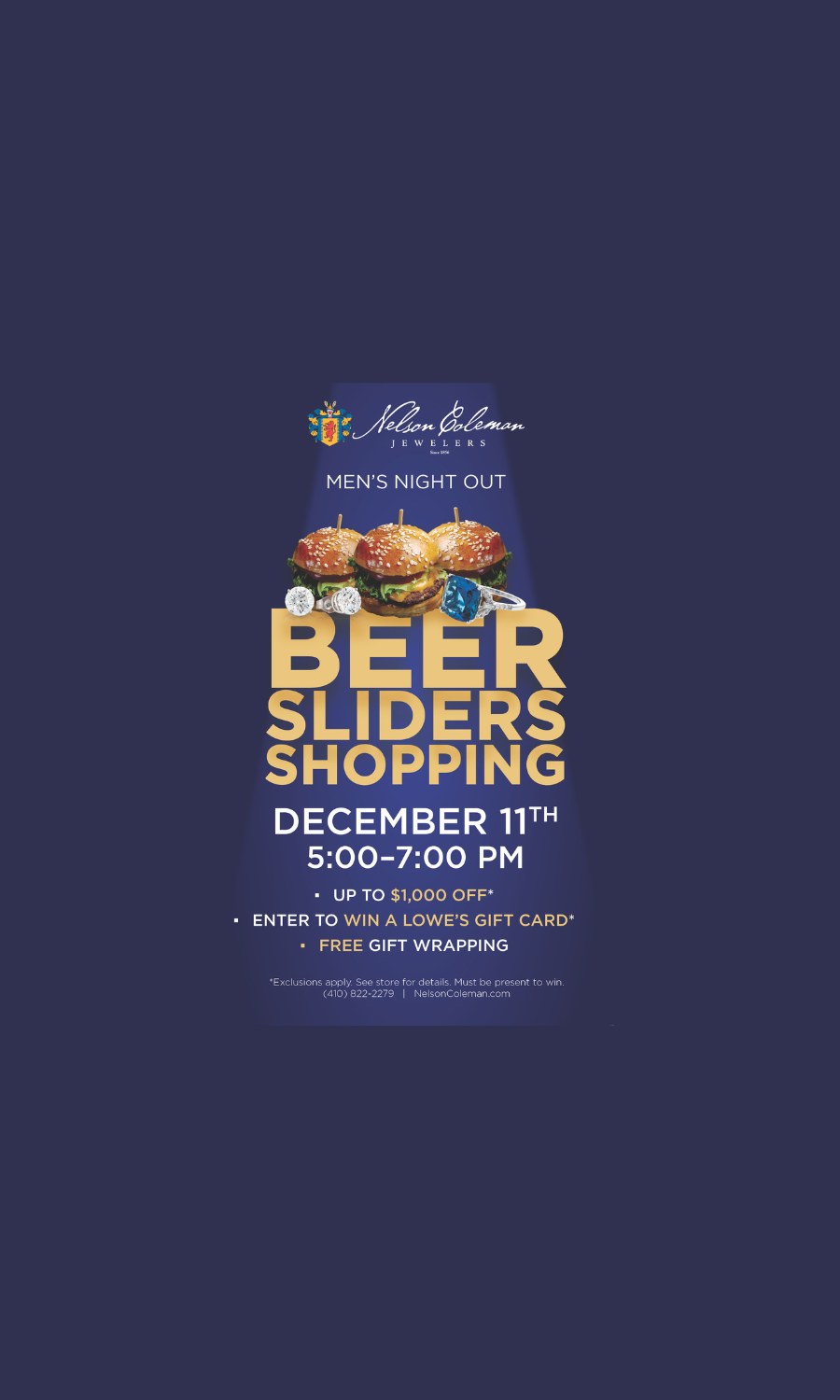 Join us for a night of beer and sliders while shopping for the perfect jewelry gift this holiday season! Take advantage of exceptional offers up to $1000 off.