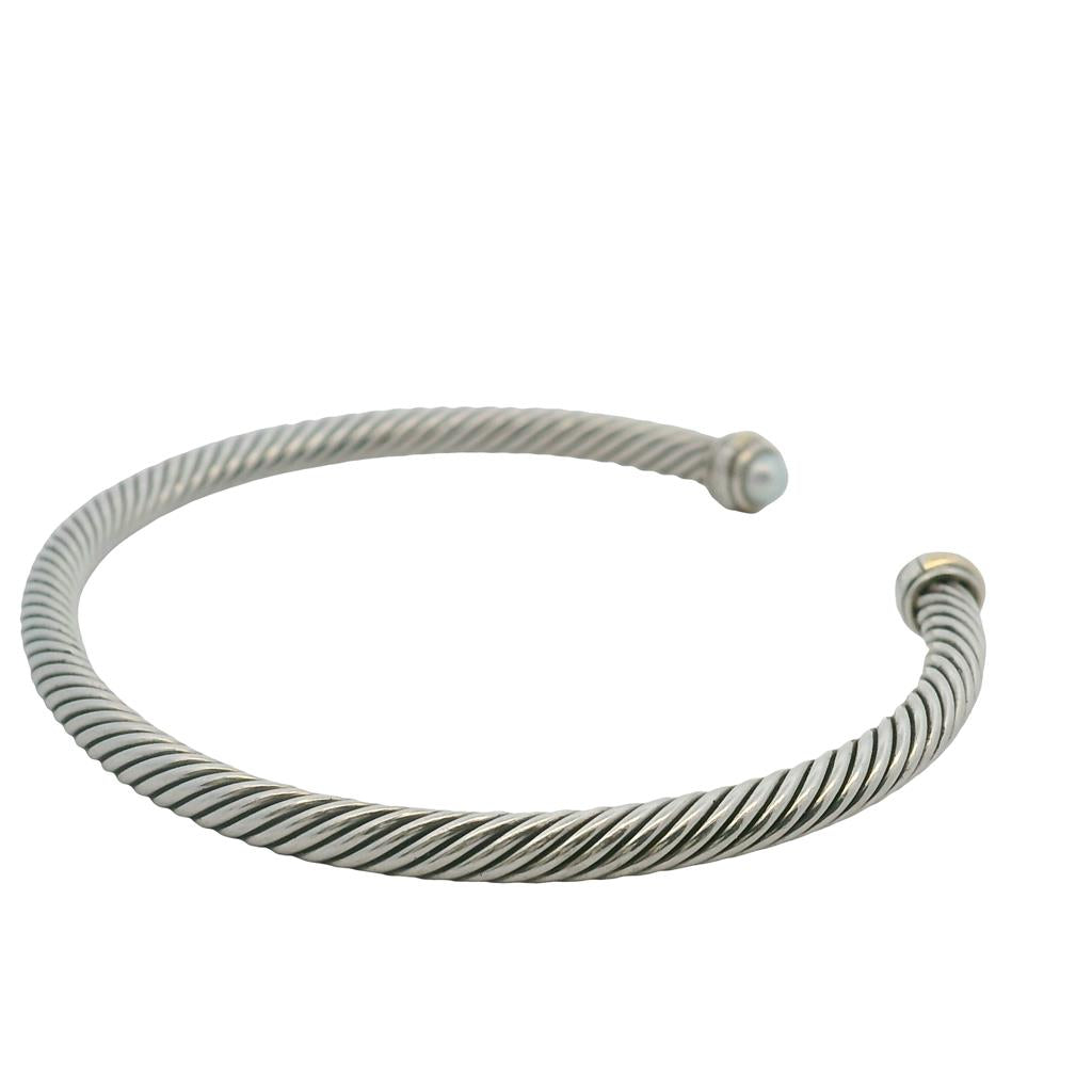Estate David Yurman Sterling Silver and 18K Yellow Gold Cable Bangle with Pearls